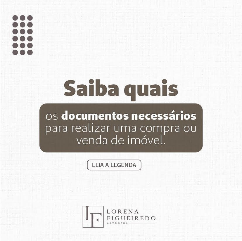 Ao realizar a compra ou venda de um imóvel, serão necessários apresentação de alguns documentos, dentre eles: